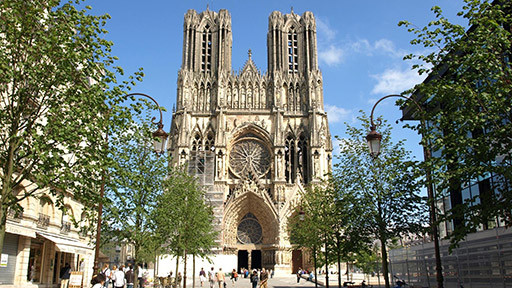 Práce na této slovutné stavbě začaly 6. května 1211. Remeští andělé ale nedokázali vždy zabránit neštěstí a ničení. V září roku 1914 a potom v průběhu první světové války ničily bomby německé armády katedrálu i samotné město. Tehdy tato katedrála vyhořela a v následujících letech ji zasáhlo několik bomb. Byl to lákavý terč, citlivé historické místo. Ztělesňovalo identitu Francie. Neuvěřitelné ale je, že to vydržela konstrukce katedrály. Kostra stavby ze 13. století, všechny pilíře... Ve střeše bylo plno děr, ale konstrukce vydržela. Po válce bylo potřeba rozhodnout, zda ponechat poničenou ruinu jako důkaz barbarství agresora. Naštěstí ten názor nepřevážil, všichni, kteří se v Remeši snažili odstranit škody a katedrálu zachránit, prohlásili: "Ne, katedrála musí žít!".