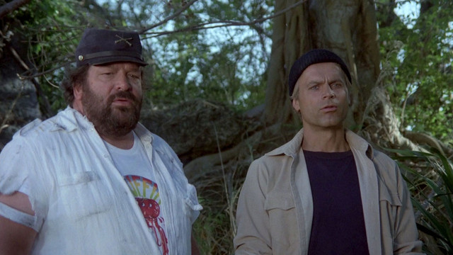 Tentokrát lítá podvodníček Allen (Terence Hill) v pořádném maléru. Na koníčkách už prosázel úplně všechno, a pokud místním gangsterům rychle nesplatí dluh, vyrazí z něj místo peněz duši. Naštěstí se mu v přístavu podaří ukrýt na lodi Charlieho O'Briena (Bud Spencer), který právě vyplouvá na cestu kolem světa a čeká ho tučná odměna, pokud se mu to podaří. Plány poklidné plavby ale Charliemu narušují podivné úkazy: jídlo mu mizí z talíře, sotva se otočí, a kompas se snad úplně zbláznil. Než se ovšem Charliemu podaří prokouknout, o co jeho černému pasažérovi jde, je už příliš pozdě. Moře je oba vyplaví na tichomořském ostrůvku, kde by se podle Allenova strýčka měl ukrývat poklad. Při jeho hledání narazí dvojice trosečníků na mírumilovný kmen místních, ale také na po zuby ozbrojeného japonského vojáka, pro kterého válka nikdy neskončila. Aby toho nebylo málo, na ostrově se krátce na to vylodí tlupa pirátů a dorazí i Allenovi staří známí.