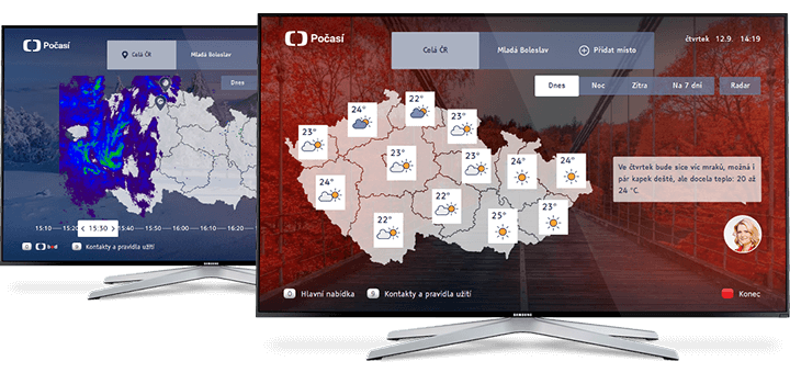 Ani to nechybí. K dispozici je přímo samostatná aplikace Počasí. Zahrnuje předpovědi počasí pro Českou republiku až na sedm dní dopředu. Předpovědi doplňují neformální komentáře moderátorů počasí ČT. Sami uživatelé si mohou přidat vlastní lokalitu, pro kterou se zobrazí předpověď.