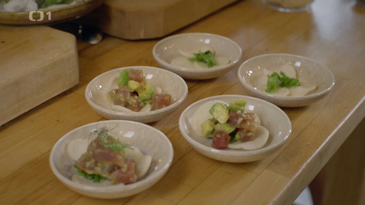 Tuňákový tataráček na krevetovém chipsu