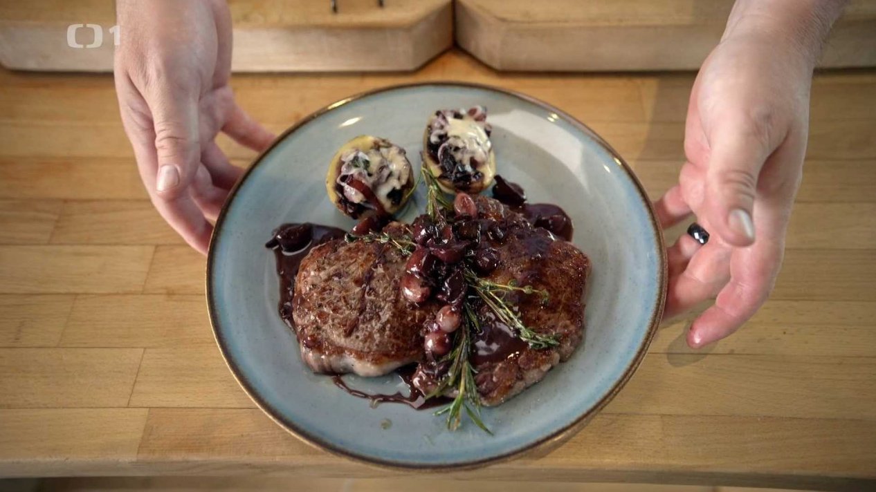Rib eye steak a plněné brambory