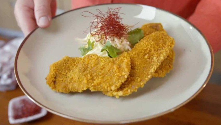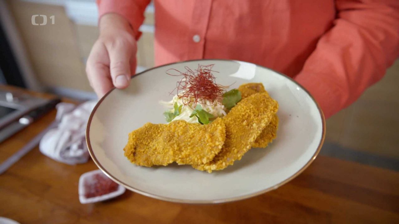Řízek z kachního prsa s celerovo-jablečným salátem s citronovou majonézou