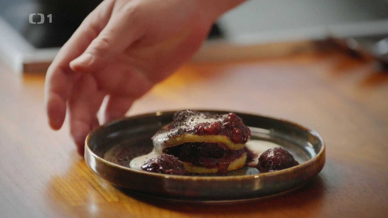 Zakysanou smetanu smícháme s citronovou šťávou a moučkovým cukrem. Jednotlivé placky servírujeme se švestkovým rozvarem a klademe je na sebe, přičemž střídáme jednotlivé vrstvy. Na poslední vrstvu přidáme 2 lžíce ochucené zakysané smetany a můžeme ještě lehce posypat mákem.