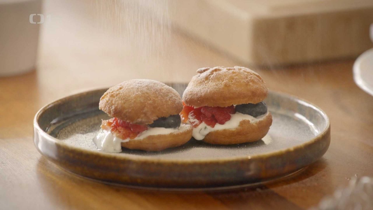 Koblížky plněné bezinkovým krémem a čerstvým ovocem