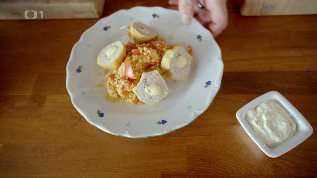 Kuřecí mleté maso s mozzarellou a rajčatový salát s kuskusem