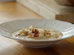 Zelná polévka s bylinkovými krutony a vypečenou slaninou