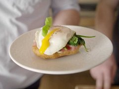 Langoš se špenátem, slaninou a sázeným vejcem