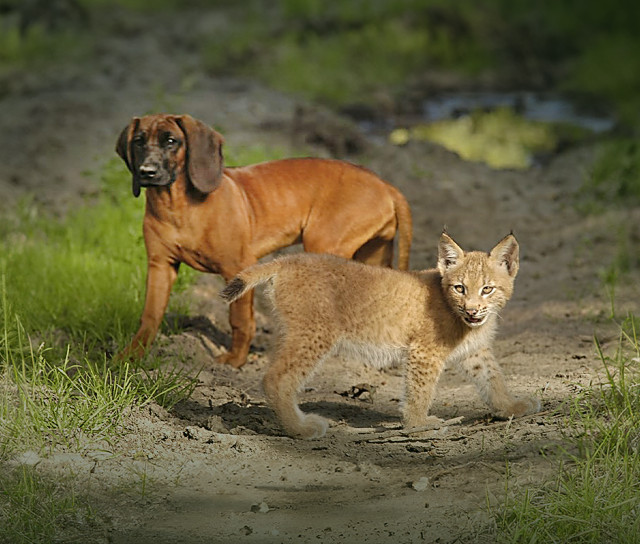 O přátelství loveckého psa a malého opuštěného mláděte rysa ostrovida.