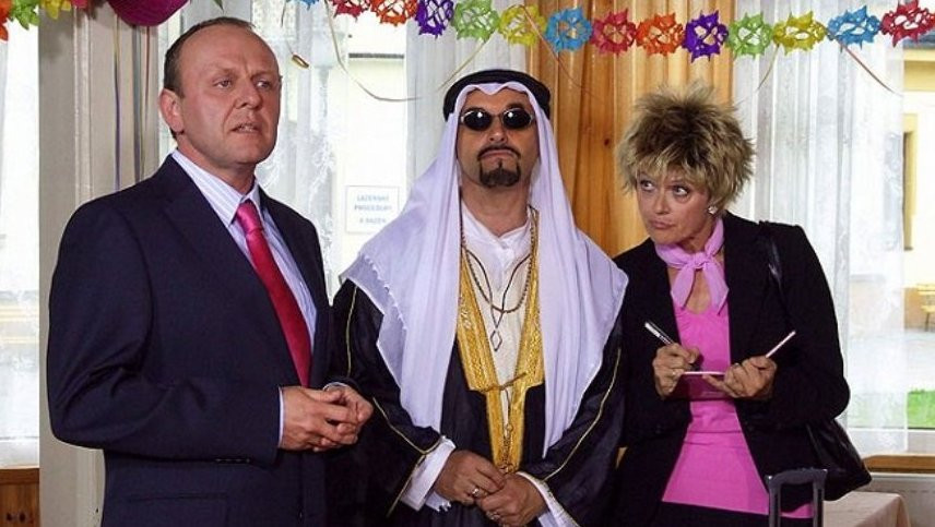 V hlavních rolích se představí Jaroslav Dušek v roli ředitele lázní a Miroslav Táborský v úloze vydařeného šejka.