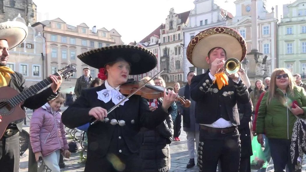 Španělštinu vyučuje v ekonomickém lyceu v Dušní ulici Jihoameričan Luis Palacios. Ten se před několika lety rozhodl slavit se svými studenty Dušičky mexickým způsobem. V tomto podání vypadá památka zesnulých jako velký karneval. Studenti roztančili celé Staroměstské náměstí.