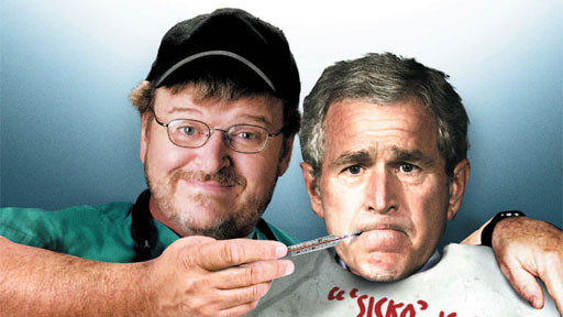 Známý kontroverzní americký filmař Michael Moore se ve svém filmu Sicko zaměřil tentokrát na poměry v americkém systému zdravotního pojištění. Na příkladech několika lidí, kteří z různých důvodů potřebovali lékařskou pomoc, demonstruje Moore triky, jimiž se pojišťovny snaží zabránit, aby za své klienty platily. Řadu lidí dokonce tyto instituce z malicherných důvodů vůbec odmítají pojistit jako příliš rizikové klienty. Autor se vydává i za hranice, konkrétně do Kanady, Francie a dokonce na Kubu, aby ukázal, jak funguje zdravotní systém tam. Michael Moore, jak je u něj již obvyklé, zaujímá jednoznačné (a pohříchu i jednostranné) stanovisko, přičemž své "nepřátele" nijak nešetří. Používá přitom svůj pověstný sarkasmus, ironii a samozřejmě též nesporný filmařský talent.
