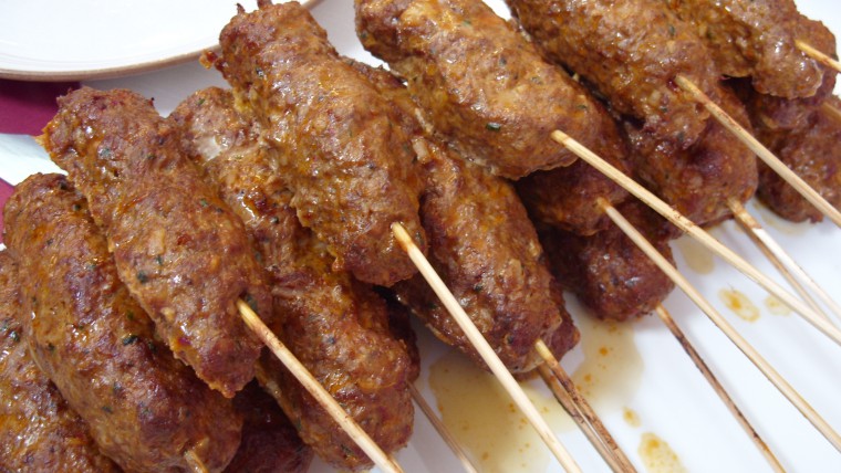 Poté z ní navlhčenýma rukama tvarujeme válečky, které napichujeme na špejle. Nebudou se pak rozpadat a lépe drží tvar. Grilujeme v troubě při 250 stupních asi 10 minut. Ideální je ale příprava na dřevěném uhlí.