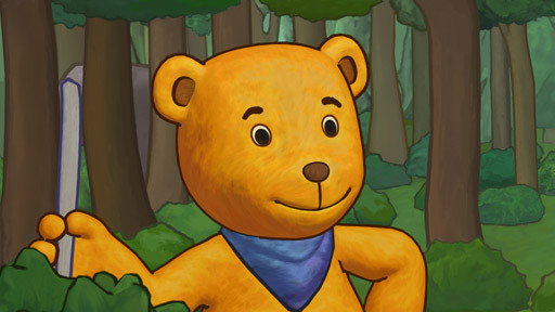 Všichni lesní přátelé mu říkají Měsíční medvídek, ale on je to vlastně úplně normální medvídek, který sní o tom, že Měsíc pozve na chutné domácí medové koláčky. To však tito nerozluční kamarádi - Medvídek, Zajíc, Beruška, Kňoura, Starý jezevec, Havran, Lišák, Žabák, Datel - netuší jaký budou mít před sebou nelehký úkol. Vrátit Měsíc, který spadl omylem na zem, zpátky na oblohu. A třeba nakonec i ochutnal medvídkovi medové koláčky.
