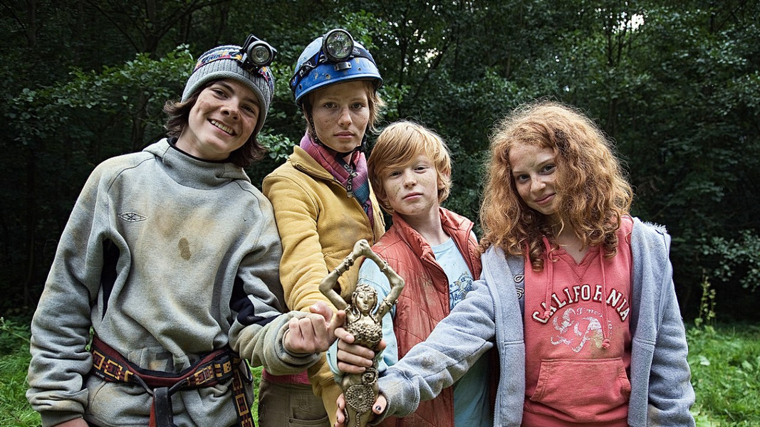 Jedenáctiletý David Kolíbal společně se svou o dva roky starší sestrou Klárou a rodiči, tráví letní prázdniny v Moravském krasu. Zatímco se Klára za pomoci tatínka učí lézt po skalách, David se toulá po okolí a vyhledává prázdninová klukovská dobrodružství. Majitelem hospody s několika pokoji, ve kterých jsou nyní ubytováni i Kolíbalovi s dětmi, je jistý Soukup, který zde žije se synem Matějem a psem Šuplíkem. Matěj je ve zdejších jeskyních jako doma. Občas se mu zde podaří nalézt nějaké staré mince, které jeho otec pokoutně prodává movitým sběratelům ze zahraničí. Jednou ale Matěj objeví starou bronzovou sošku koně. Svůj nález však před hamižným otcem zatají a zajde s ním do muzea, aby zjistil hodnotu tohoto nálezu. Nakonec však z muzea i se vzácným archeologickým nálezem uteče. Tato skutečnost však nezůstane bez povšimnutí médií. Dozví se o ní i Matějův otec a David, který se jako vetřelec snaží proniknout do Matějova tajemství. Důležitá zpráva o mimořádném nálezu jedinečné sošky neunikne pozornosti - nebezpečného profesionálního překupníka a vykradače archeologických památek, Myšáka. Nečekaně se zjeví v Soukupově hospodě a ubytuje se zde se svojí čtrnáctiletou dcerou Veronikou…