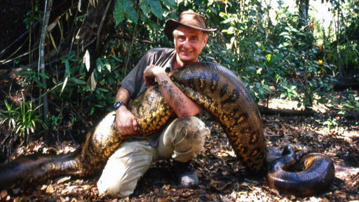 Stejně jako kameraman Mike Allicock a Rainer Bergomaz, vedoucí týmu. V zavazadlech mají nejmodernější měřící a pátrací techniku. Takto vyzbrojen se nevydal po stopách mýtu obrovitého hada dosud nikdo. Životní prostředí, ve kterém se anakonda cítí dobře, je neobyčejně krásné. Savany, mokřiny a neproniknutelné lesy na východ od And. Tropická nížina Jižní Ameriky se rozprostírá od severní Venezuely až po Argentinu. V nížinách Guyany je dokonce i v době sucha, všude ještě spousta vodních ploch. Ideální životní prostor pro celou řadu zvířat. Svůj domov zde má několik set druhů ptáků.
