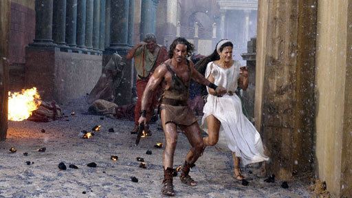 Dvě různá období na témže místě, historie a současnost, vzdálené od sebe stovky let. Všechno se mění, jen hora a lidé ne. Vesuv je stále ničivou hrozbou, na niž je člověk krátký a naopak - lidské city a vášně ani přírodní katastrofa nezastaví.