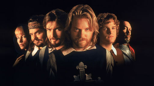Román Alexandra Dumase staršího Tři mušketýři (1851) patří k jeho nejoblíbenějším už po několik čtenářských generací a také se řadí k látkám, jež byly nejčastěji převedeny do filmové (či televizní) podoby. I neúplný seznam čítá několik desítek adaptací. Naši diváci znají především dvě z nich, dvoudílnou francouzsko–italskou verzi (1961) s Gérardem Barrayem a Lesterovu, rovněž dvoudílnou, téměř parodii (1973–74) s Michaelem Yorkem. Řada přepisů vznikla v Hollywoodu, slavná je němá verze (1921) s Douglasem Fairbanksem a také výpravná adaptace společnosti MGM (1948) s tanečníkem Genem Kellym. Jedním z posledních zpracování je disneyovská variace (1993), která ovšem s Dumasovou předlohou nakládá víc než volně. Čtyři hlavní hrdiny ztělesňují populární hollywoodští představitelé, Chris O´Donnell (D´Artagnan), Kiefer Sutherland (Athos), Charlie Sheen (Aramis) a Oliver Platt (Porthos). Jejich úhlavního protivníka, kardinála Richelieua hraje anglický herec Tim Curry (kdysi hrál Willa Shakespeara ve stejnojmenném seriálu). Scenárista David Loughery vyřadil spoustu vedlejších motivů, celý děj zjednodušil a režisér Stephen Herek (pozdější tvůrce Opusu pana Hollanda či hrané verze 101 dalmatinů) se jako správný Texasan soustředil na popis šarvátek a rvaček a dodal snímku potřebný švih, spád a také nezbytný humor. Exteriéry se natáčely v Evropě, v anglickém Cornwallu a v Rakousku. Rocková píseň All For Love, která ve filmu zazní v podání Bryana Adamse, Roda Stewarta a Stinga, se stala velkým hitem.