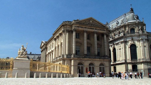 Versailles ve francouzském království byl symbolem moci, a všechno zde bylo uzpůsobeno tak, aby králova moc co nejvíce vynikla! Vyjádřením moci byl stříbrný trůn, umístěný na přání krále na konci dvaadvacetimetrové Zrcadlové síně. Přijímání delegací se většinou odehrávalo v králově pokoji. Říkalo se tomu "Sloupkové přijetí". Když žádal nějaký velvyslanec o svou první audienci, přinesl své pověřovací listiny až k vnitřním sloupkům zábradlí v králově pokoji. Královská komnata byla skutečným symbolem moci. Pro případ, kdy chtěl Ludvík XIV. udělat ještě větší dojem, rozhodl se umístit trůn na hodně vyvýšené pódium až na druhém konci Zrcadlové síně. Taková situace nastala s janovským dóžetem. Ten totiž krále urazil, protože střílel na francouzskou flotilu. Podle zákonů Janovské republiky nesměl dóže své území nikdy opustit. Francouzský král přesto prosadil, že se mu dóže musí osobně omluvit. Byl to tehdy obrovský diplomatický úspěch. Dóže byl nucen projít celou galerií až ke králi. Tehdy to znamenalo skutečné ponížení.
