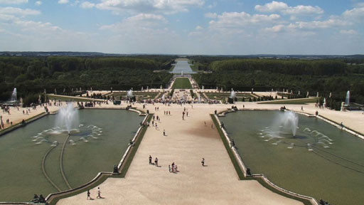Hlavním autorem originálního pojetí zahrad byl Le Notre, kdo přenesl do Versailles koncepci francouzské zahrady v pozoruhodném měřítku. Architekt vytýčil páteř zahrad. Potom rozčlenil prostor směrem k západu sítí kolmých a paprskovitě vybíhajících alejí. Vznikl tak dojem struktury a geometrického řádu. Často se říkalo, že Le Notre začlenil hegeometrii do krajiny. A to je přesně postup, který tu můžeme vidět. Je zde přirozené prostředí, zvlněná krajina, a Le Notre do ní vtiskl pravoúhlou geometrickou mříž.