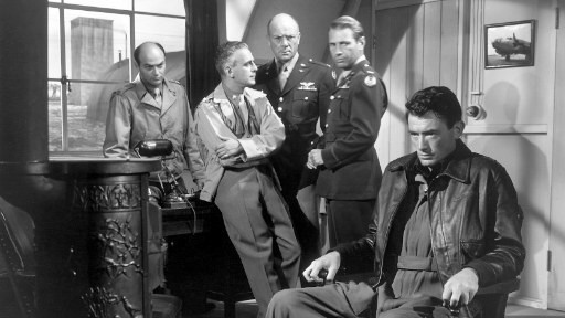 Válečný film Přímo nad hlavou (1949) vznikl podle stejnojmenného románu, jehož autoři Beirne Lay Jr. a Sy Bartlett vycházeli z vlastních zážitků. Společnost 20th Century Fox zakoupila práva na knihu v říjnu 1947, tedy ještě před jejím vydáním, a režií pověřila svého kmenového tvůrce Henryho Kinga. Snímek líčí osudy amerických letců v Británii, kteří se zúčastňovali pravidelných denních náletů na Německo. Na podzim 1942 to byli jediní Američané bojující v Evropě. Hlavní úlohu jejich nového velitele generála Savage vytvořil Gregory Peck, známější spíš jako představitel romantických hrdinů (viz např. pozdější Prázdniny v Římě). Film byl původně naplánován jako barevný, ale nakonec se natáčel na černobílý materiál, především kvůli začlenění dokumentárních pasáží. Vůbec poprvé byly v hraném americkém filmu využity záběry bojových akcí pořízené německou Luftwaffe. Mimořádně zdařile je v něm zobrazen každodenní život letecké základny během války, stres posádek bombardérů B-52, trávících značnou část svých dnů v přímém ohrožení života, i jejich velitelů pod tíhou někdy až nesnesitelné zodpovědnosti. Poprvé se tak na plátně objevily důsledky psychologických vlivů na vojáky ve válečné situaci. Zajímavý je také fakt, že byl později využíván obchodními firmami (např. Coca-Cola) při kurzech výchovy vedoucích pracovníků. Film získal dva Oscary, za vedlejší herecký výkon Deana Jaggera (zástupce velitele major Stovall, který je také vypravěčem příběhu) a za práci zvukařů. Nominaci měl za hlavní úlohu Gregory Peck, pro něhož se určitou kompenzací stala neméně prestižní Cena newyorských filmových kritiků, a film jako takový. Na motivy snímku vznikl s časovým odstupem stejnojmenný TV seriál (1964-67).