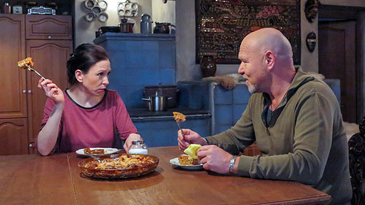 Setkání na chatě je plné ostrých i smířlivých reminiscencí na dlouholeté komplikované manželství.