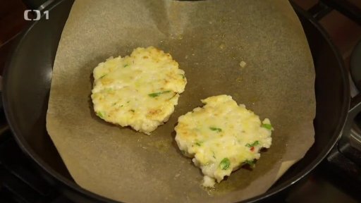 Poté si ze směsi vytvarujeme placičky. Pánev vyložíme pečícím papírem a na něm rozpustíme přepuštěné máslo. Vkládáme placičky a opékáme.