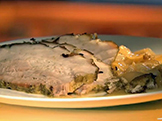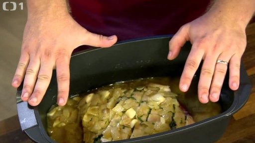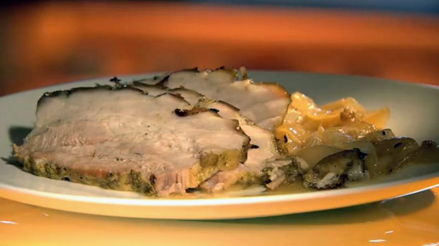 Cibuli a 4 stroužky česneku nakrájíme. Tymián, šalvěj, petržel, kmín, sůl a pepř rozdrtíme v hmoždíři. Po chvilce přidáme trochu olivového oleje. Kůži vepřového boku nařízneme, aby nám na ní vznikly centimetrové čtverečky. Směs vetřeme do řezů. Z druhé strany maso osolíme a opepříme. Zbytkem směsi potřeme i masovou část. Rozehřejeme si olivový olej a na něm orestujeme cibuli. Až bude cibulka dozlatova, přidáme česnek. Po chvilce zalijeme vývarem. Svaříme a přilijeme pivo. Marinádu přilijeme do pekáče a necháme ji vychladnout. Maso v ní necháme marinovat do druhého dne. Pečeme 2 hodiny při 140 stupních, následně pečeme 1 hodinu na 160 stupňů.