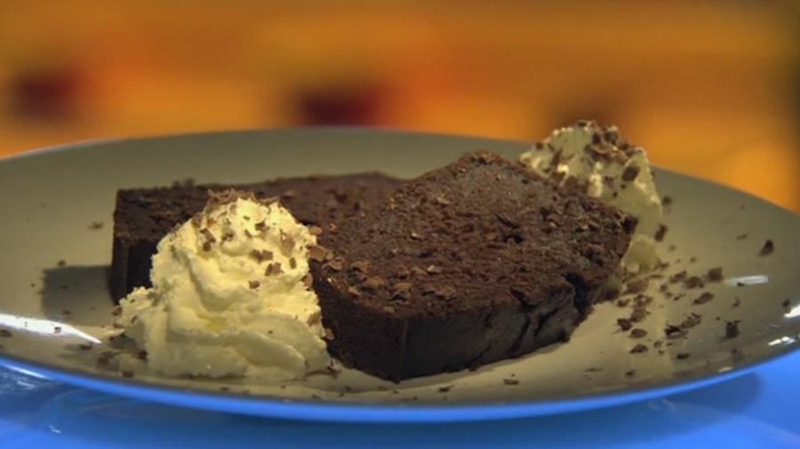 Sterilovanou červenou řepu umixujeme a dáme do mísy. Prosejeme si do ní mouku hladkou i polohrubou. Přidáme kypřící prášek, jedlou sodu, cukr, kakao a 3 vejce. Promícháme. Po malých částech přilijeme olej a přidáme část nasekané čokolády. Větší kousek si můžeme nechat na dozdobení. Promícháme, přelijeme do pekáčku a dáme do předehřáté trouby. Pečeme až 60 minut při 170 až 180 stupních. Propečení kontrolujeme špejlí; až se těsto nebude na špejli lepit, je hotovo. Nakrájíme, přidáme vyšlehanou smetanu a posypeme nastrouhanou čokoládou.