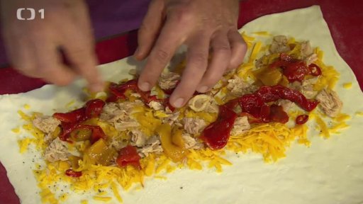 Závin s tuňákem, čedarem a paprikami
