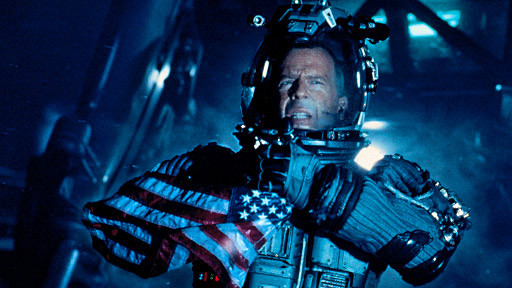 Katastrofický snímek s biblickým názvem Armageddon (tedy zkáza světa) byl v roce 1998 jedním ze dvou titulů, v nichž byla Země bezprostředně ohrožena srážkou s vesmírným tělesem. Ve filmu Drtivý dopad se k naší planetě řítí obří meteorit, v Armageddonu je to ještě větší asteroid. Jediný způsob, jak se pokusit o záchranu lidstva, je vyslat do vesmíru odborníky, kteří na asteroid umístí atomové nálože, jež ho rozpůlí a vychýlí z kolizní dráhy... Ve filmu spojili své síly známý producent Jerry Bruckheimer a režisér Michael Bay, kteří předtím slavili velký divácký úspěch akčním filmem Skála (1996). Hlavními hrdiny Armageddonu jsou sice hloubkoví naftoví vrtaři v čele se svým šéfem Harrym Stamperem (Bruce Willis v další ze svých kreací neohroženého zachránce), ale pro diváka jimi spíš budou propracované vizuální efekty, přesvědčivě dokreslující nejrůznější katastrofické situace, od zkázy několika velkoměst úlomky asteroidu (Šanghaj, Paříž) až po vlastní přistání dvou raketoplánů na nestabilním vesmírném tělese. Autoři scénáře (mezi nimiž byl i dnes veleúspěšný autor J. J. Abrams) nešetřili obrazy zkázy, ani pro obdobná hollywoodská díla nezbytným patriotismem. Vedle Bruce Willise se tu objevují další známí herci, např. Billy Bob Thornton (výkonný ředitel NASA Truman), Ben Affleck (frajerský vrtař Frost) nebo Liv Tylerová (Stamperova dcera Grace). Film byl nominován celkem na čtyři Oscary, za vizuální efekty, zvuk, střih zvukových efektů a píseň (I Don´t Want To Miss A Thing), ale žádného nezískal.