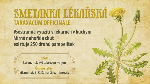 Pampeliška je sice pro zahrádkáře mor v trávníku, ale věneček z pampelišek bude vždy evokovat zdraví z přírody. Vysoký obsah minerálních látek a vitamínů jí zaručuje již od 11. století všestranné využití v lékárně i v kuchyni: z mladých listů salát, z kořene kávu, z květů med, z listů víno nebo odvary. Podporuje psychickou rovnováhu a zbavuje únavy a vyčerpanosti. Sbírat můžete již od března.