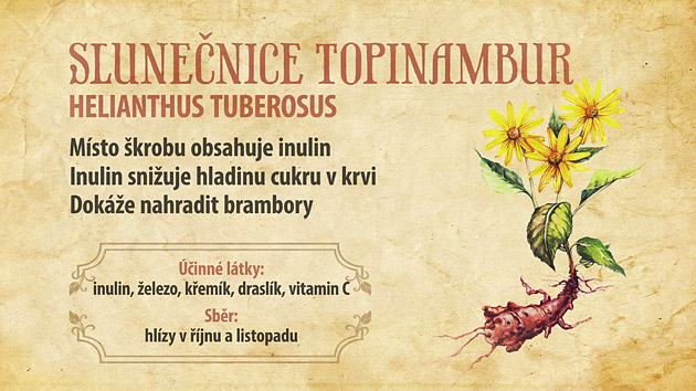 Topinambur není příbuzný ani s artyčokem ani s bramborami, jak by jeho lidové názvy mohly naznačovat, ale slunečnice. Hlízy této slunečnice se dají konzumovat jak syrové, tak vařené a na rozdíl od brambor obsahují místo škrobu látku inulin, která na rozdíl od škrobu nezvyšuje hladinu cukru v krvi.