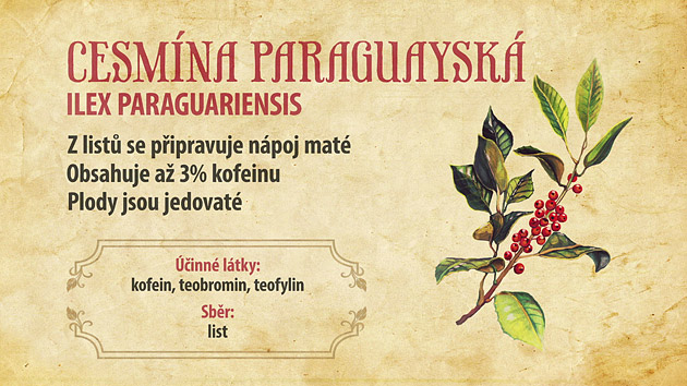 Pochází z Jižní Ameriky, kde je užívána pro stejný efekt jako u nás káva. Obsahuje totiž okolo 1 % mateinu, ten je však chemicky naprosto totožný s kofeinem. Maté je skvělým životabudičem, obyvatelé Jižní Ameriky pitím maté tlumí pocit hladu, což jim pomáhá přežít v dobách nouze. Prostě vám pomůže při hubnutí.