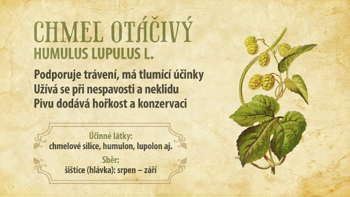 Chmel otáčivý je prastarou a prospěšnou bylinou se sedativními účinky. Jde o liánu, z níž se používají šištice, které obsahují chmelové pryskyřice, silice a polyfenoly. Pryskyřice jsou nositelem hořkosti, silice zase dodávají chmelové aroma. Polyfenoly jsou pak přirozené antioxidanty, které mají i příznivé účinky na zdraví.