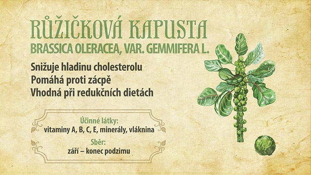 Další z rodiny brukve zelné, pěstuje se již tisíce let a dnes jí známe jako brokolici, květák, kedluben, kapustu, romanesco, kadeřávek nebo právě růžičkovou kapustu. Přežije až 10 stupňů pod bodem mrazu a v zimě slouží jako posilovač imunity, a to díky zásobě čerstvých minerálů a vitamínů. A navíc obsahuje látku cholin, která pomáhá zlepšovat paměť