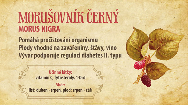 Plody moruše jsou tmavě fialové až černé, lesklé peckovičky připomínající ostružiny. Rostou-li okolo vás moruše, můžete si být skoro jistí, že před padesáti lety okolo nich byl chovatel bource morušového a prodával kokony pro hedvábnictví. Bylo to něco jako včelaření. Takový jarní sezonní přivýdělek. A moruše kolem nás zůstaly jako svědek této zapomenuté činnosti.