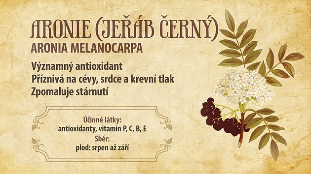 Aronie, neboli černý jeřáb, je opadavý keř. Dorůstá do výšky asi 1,5 metru a výrazně dobře plodí. Aronie je známá díky svému velkému obsahu účinných látek. Černý jeřáb posiluje zrak i imunitu, stimuluje funkci štítné žlázy, zlepšuje paměť, odstraňuje těžké kovy z těla, bojuje s vředovým onemocněním atd.