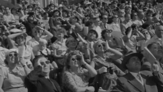 Němá reportáž ze Dne československého letectva konaného 2. září 1956 na letišti v Ruzyni.