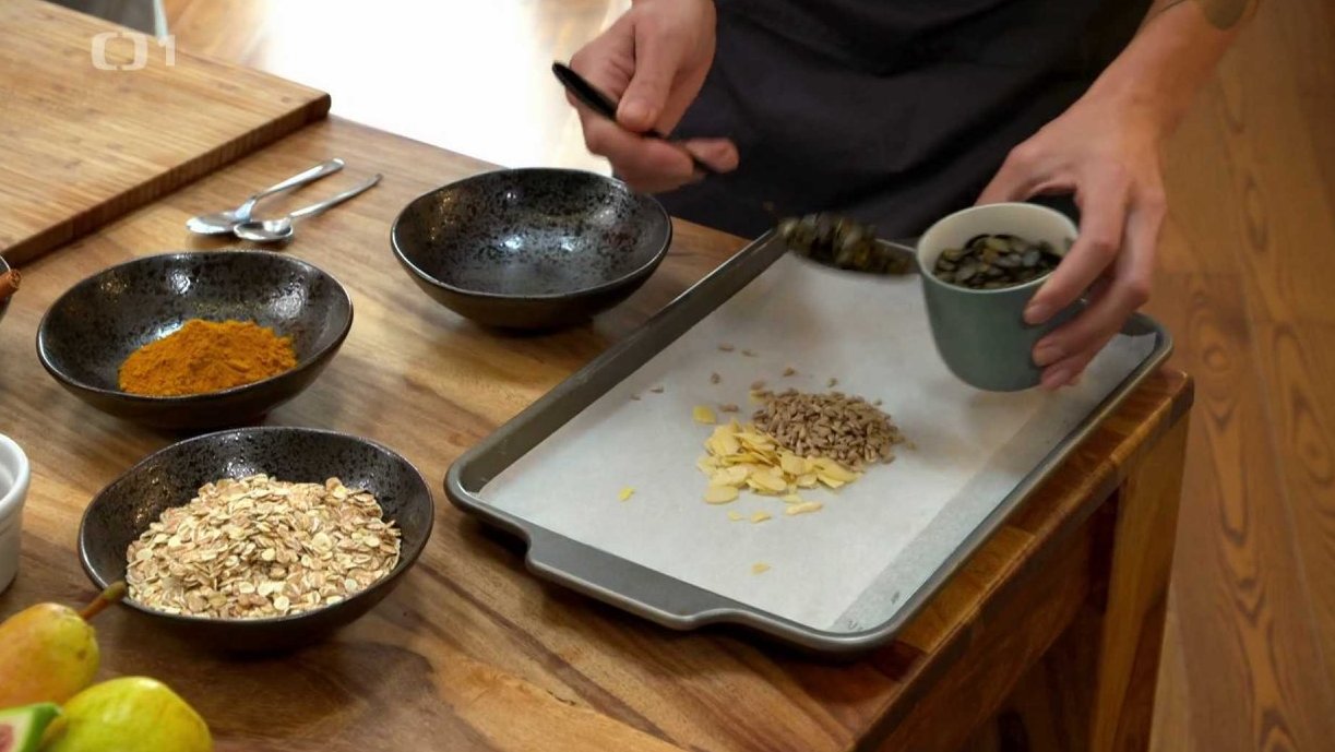 Přineseme recepty na semínkovou kaši s kurkumou, skořicí, fíky a hruškami i na batátovo-mrkvovou polévku s krekry.