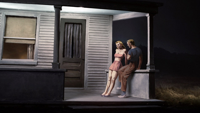 Edward Hopper (1882-1967) si vybral jako jeviště svých obrazů a skic místa v okolí svého bydliště, v newyorském Downtownu. Tam konstruoval typické prvky vizuální krásy ulic mezi pátou a sedmou avenue a jedenáctou a šestnáctou ulicí, včetně hodně odvážné Christopher Street. Určitá chladná elegance, barevná provokativnost, do jisté míry zchátralost i opuštěnost tohoto v té době ještě nepříliš bohémou prokrveného místa, se staly stavebními prvky jeho díla. Rafinovaně pracoval se světlem, perspektivou i tajemnými náladami. Čitelný je i vliv filmu, nejpopulárnějšího uměleckého media.