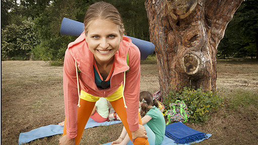 Bětka s dětmi vyrážejí do přírody, aby si jógu užili pod širým nebem.