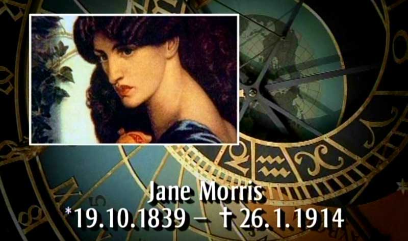 00:00:55 Jane Morris se narodila v Oxfordu jako Jane Burden.