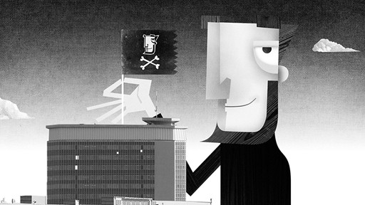 Ředitel na volné noze ve svém pravidelném dvouminutovém černobílém okénku.
