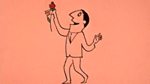 Kreslená groteska o muži, který nad nalezenou růží stále jen uvažuje, co by bylo, kdyby…