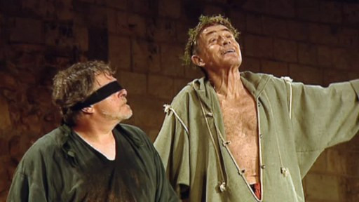 Záznam inscenace z Letních shakespearovských slavností na Pražském hradě byl pořízen ve druhém roce její existence, krátce předtím, než se na podzim roku 2003 přestala hrát. Jan Tříska, od jehož narození nedávno uplynulo 85 let, byl za titulní roli nominován na Cenu Thálie a získal Cenu Alfréda Radoka.
