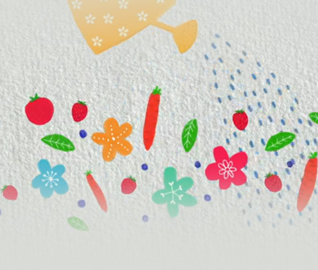 Stella si hraje na paní květinářku a sází květiny do truhlíku. Aby rostlinka dobře rostla, potřebuje vodu a sluníčko.