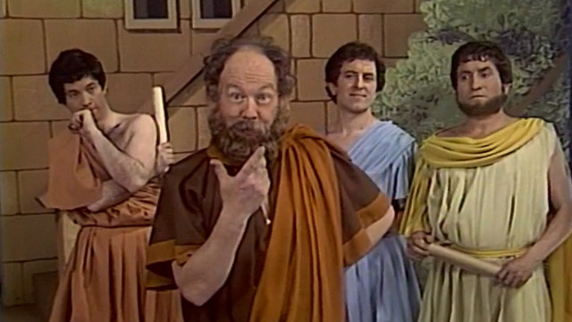 V době, kdy vládne v Athénách z válečných důvodů bigamie, aby se rodily děti, přemýšlí velký filosof Sokrates o lidských ctnostech. Meditaci přeruší jeho dvě manželky, Xantipa a Amita, které hašteřivě vtrhnou do místnosti. Obtěžovaný vědec urovná rutinně často opakovaný konflikt a počne přednášet svým žákům.