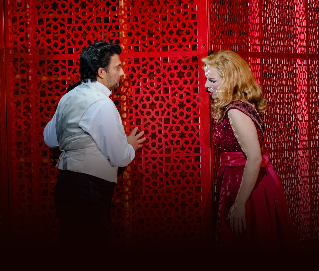 Ocitáme se v klášteře svatého Justa. Svatba Filipa a Alžběty už byla zpečetěna. Dvůr přichází vzdát svoji poctu k hrobu císaře Karla V., Filipova otce a Carlosova dědečka. Princ se setkává se svým přítelem Rodrigem, markýzem z Posy (Ludovic Tézier), který se nedávno vrátil z Flander, kde se lid snaží osvobodit ze španělské nadvlády. Když Carlos přizná, že je stále pronásledován svou láskou k Alžbětě, Rodrigo ho nabádá, aby se postavil za vlámské povstání. Princezna Eboli, hraběnka Arembergová (Elina Garanča) a královniny dvorní dámy se v přilehlé zahradě veselí. Eboli zpívá maurskou píseň (závojová árie).