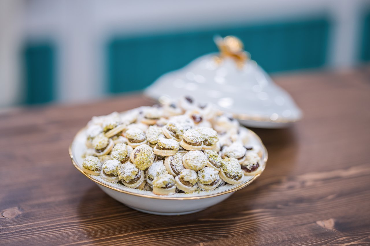Troubu předehřejeme na 180 °C. Těsto rozdělíme na tři stejné části a z každé vyválíme placku o výšce 0,5 cm. Pomocí vykrajovátka o průměru 3,5 cm vykrajujeme kolečka a plníme je jednotlivými náplněmi – každá náplň přibližně na 50 kusů. Koláčky pečeme 12 minut, dokud nejsou zespodu zlatavé. Po vychladnutí na ně nastříkáme malé pusinky máslového krému, pocukrujeme moučkovým cukrem a ozdobíme podle náplněmi.