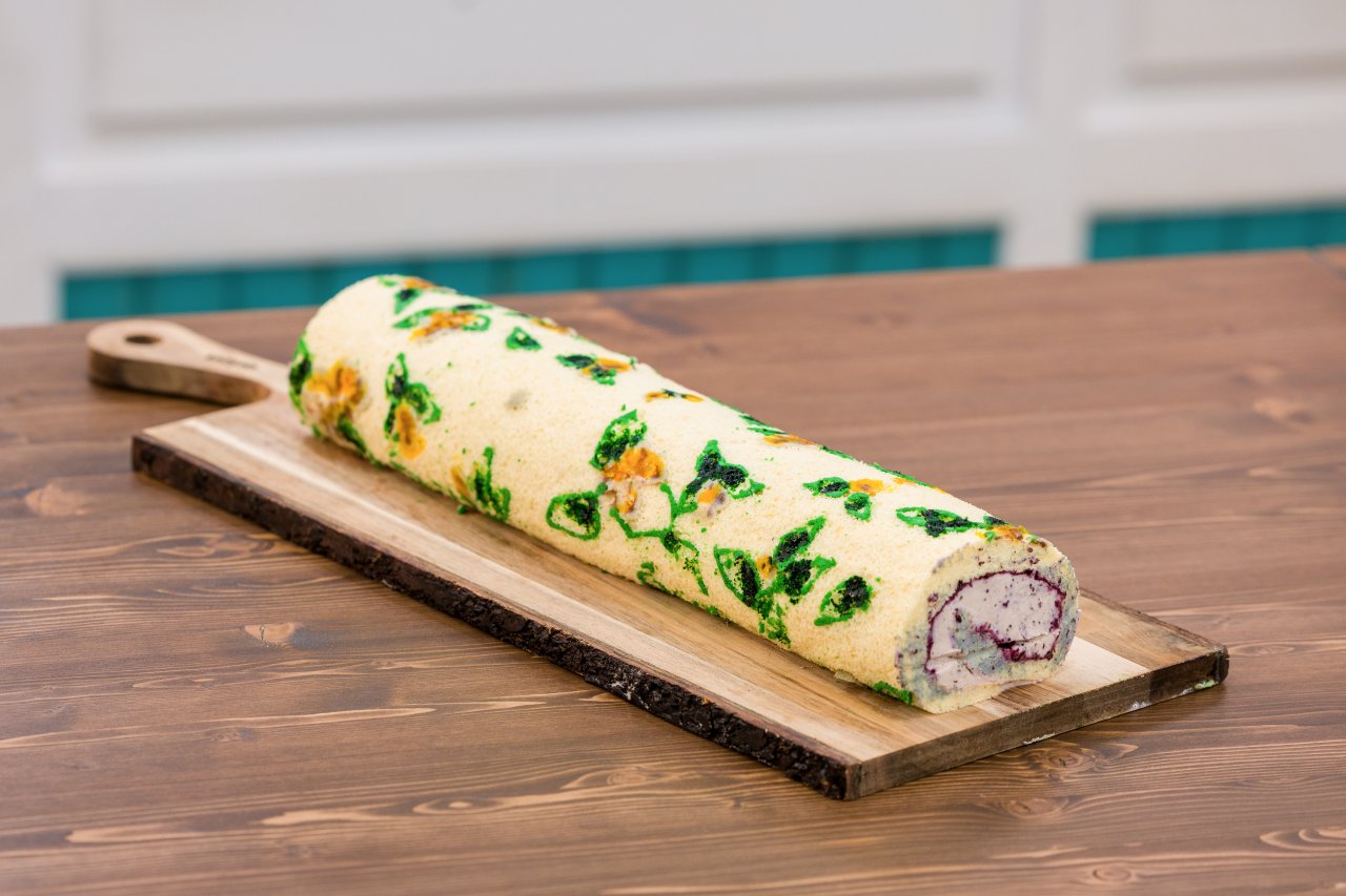Kreslicí směsí namalujeme požadovaný design na pečicí papír s předkresleným motivem. Necháme krátce ztuhnout v mrazáku a poté opatrně nastříkáme kakaový piškot tak, aby se neporušil design. Po upečení necháme korpus vychladnout, rovnoměrně potřeme krémem a zabalíme do klasické rolády.